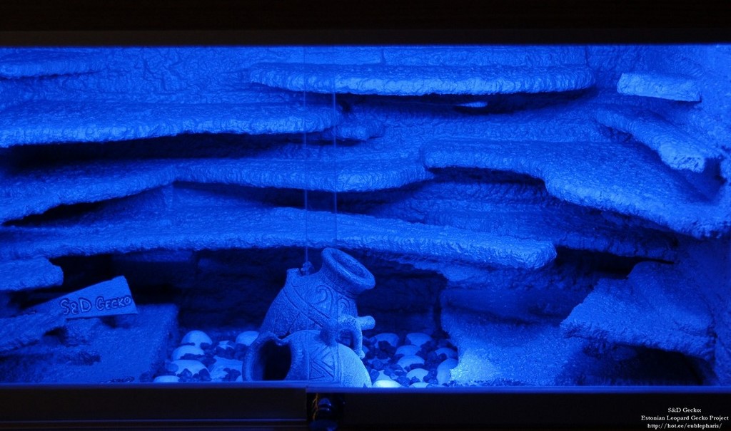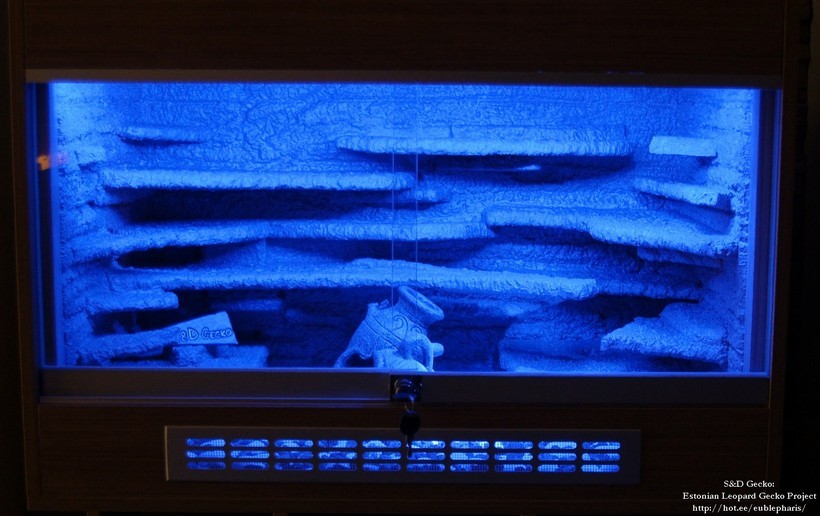 Terrarium melamiinplaadist.Ventilatsioon.Liuguksed lukkuga.Exo Terra 15W termokaabel termokontrolliga.LED Päev / Õö valgus taimeriga.Substraat, peidukohad, niiskuskamber ja jne.